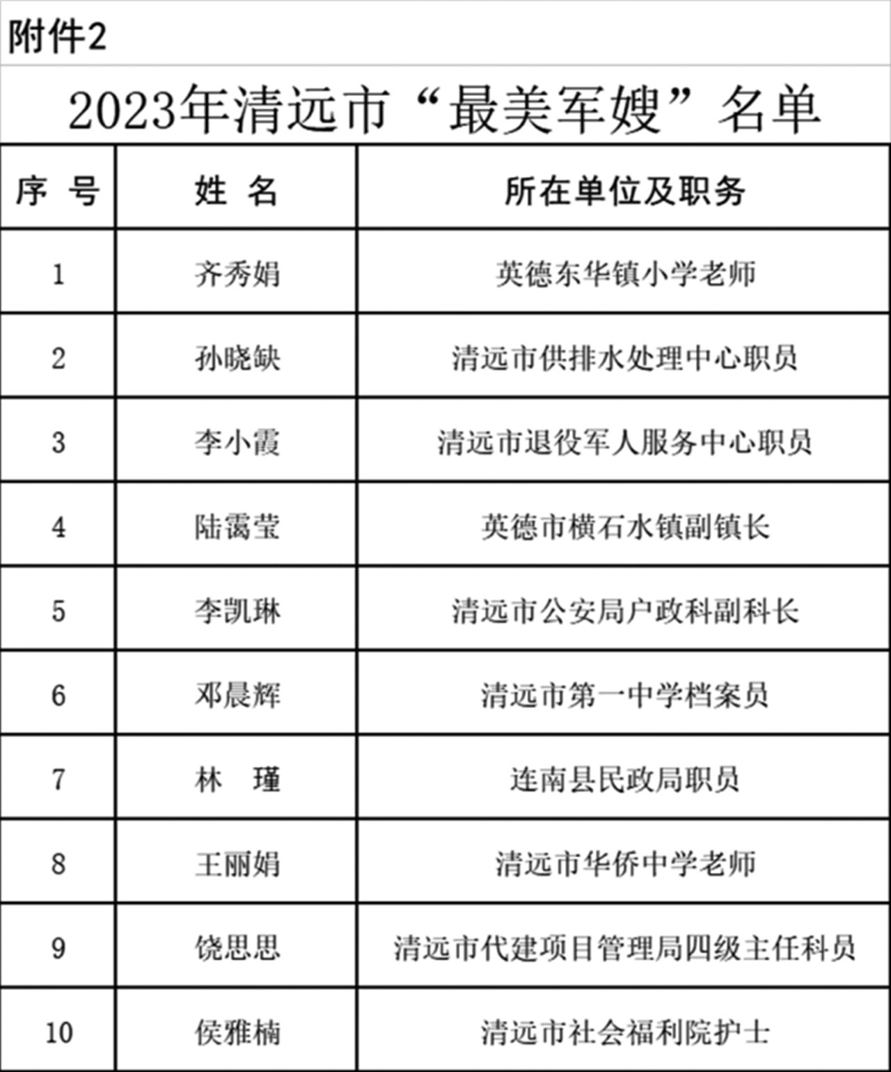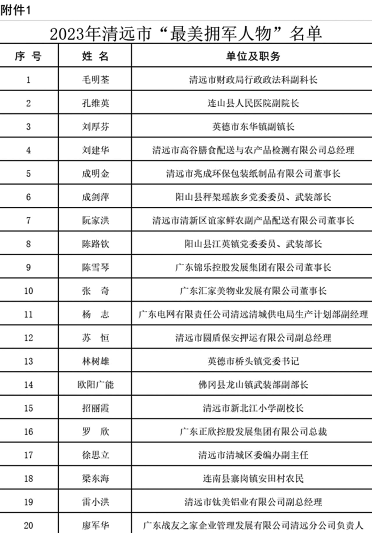 為激勵廣大干部群眾學習最美、爭當最美,在全社會大力營造關心國防、尊崇軍人濃厚氛圍,營造立足崗位作貢獻、建功立業(yè)新時代的時代風尚,清遠市雙擁工作領導小組對毛明荃等20名“最美擁軍人物”、齊秀娟等10名“最美軍嫂”予以通報表揚。